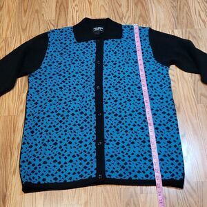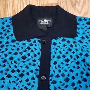Vintage Saint Tropez Leopard 'Oversized' Aqua/Black Sweater Cardigan, Medium