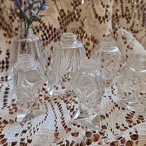 These beauties are vintage salt shakers turned vases, that are a lovely addition to your vanity counter, guest bathroom or wherever you need flowers and a touch of sparkle
