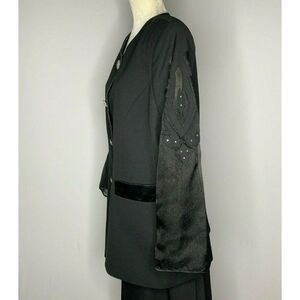 Vintage San Laurance Skirt Suit 14 Black Sheer Cutout Sleeves Rhinestone Buttons