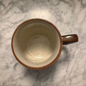 This vintage mug is in excellent condition. There are no chips or cracks. The mug has the Golden Gate on it and the inside has a speckled glaze. The cityscape is not glaze and has a bisque finish. The mug can hold approximately 6-8 oz.