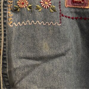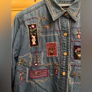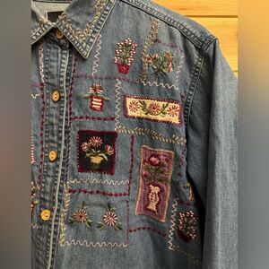 Vintage Sara Studio Size Large Plant Embroidery Collared Cropped Denim Shirt