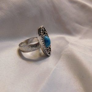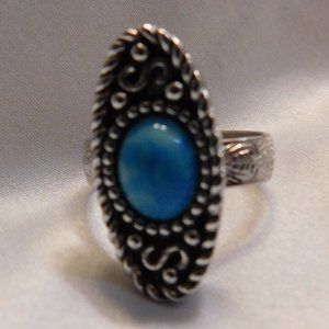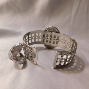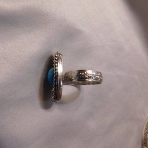 Vintage Sarah Coventry Silver Tone Faux Turquoise Ring and Cuff Bracelet