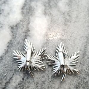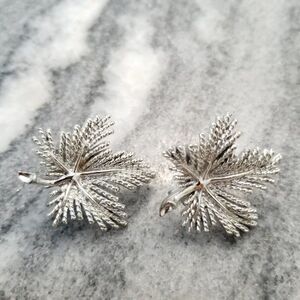 Vintage Sarah Coventry Silver Tone Leaf Shaped Clip On Earrings, Estate