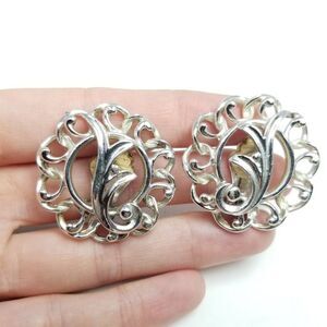 Vintage Sarah Coventry Silver Tone Swirling Clip On Earrings, Retro 80s Style