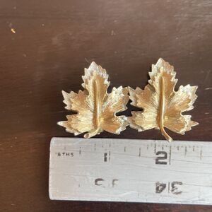 Vintage Sarah Coventry gold and silver tone double leaf earrings non-pierced