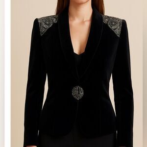 Gorgeous velvet jacket with sequined shoulders and front closure area