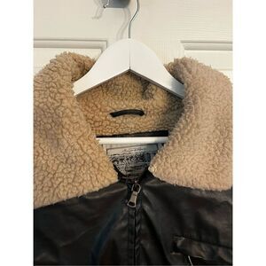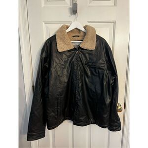 Vintage Sawyer of Napa Black Leather Sherpa Lined Aviator Jacket sz XL (flaw)
