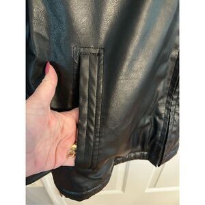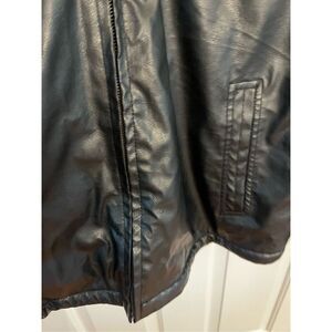 Has a tiny worn spot on the leather as shown. It’s very small and hard to see. Measures 25” pit to pit and is 28” long. Shoulder to shoulder is 21-1/2”