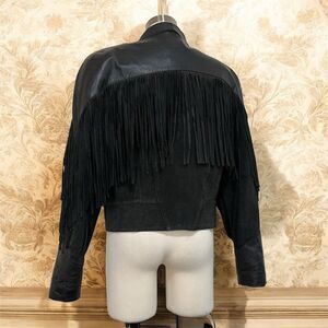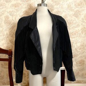 Vintage Scully Black Leather Fringe Suede Jacket Coat Small Concho