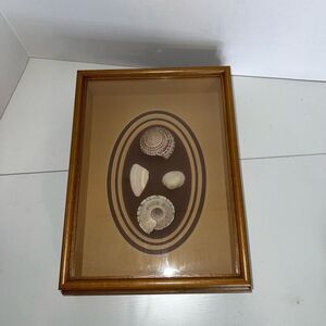 Vintage Sea Shell Framed in Oak Shadow Box Matted Glass Front Nautical Beach
