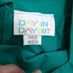 Vintage Sears Day In Day Out MuMu Dress M NWT. Color is green, 50-50 cotton-polyester, front pockets.