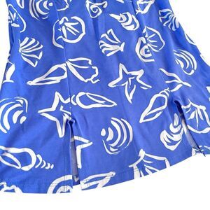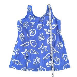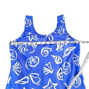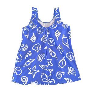 Purple/white color with all over seashell print, built in padded cups. No flaws