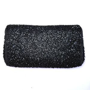 Vintage Seed Beaded Black Sequin Evening Envelope Clutch Purse