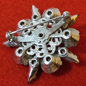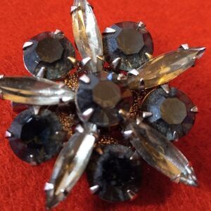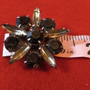 Beautiful Design and work Five diamond shaped smokey colored Rhinestones Six Circular dark gray colored Rhinestones Previously loved Sold as pictured