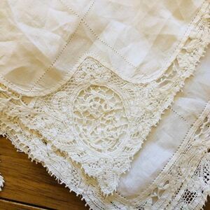 Vintage Set of 5 White Thin Cotton Napkins Embroidery Lace Trim