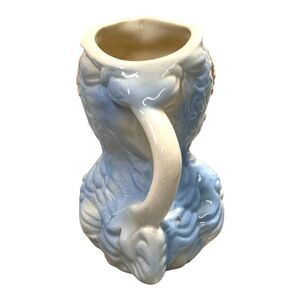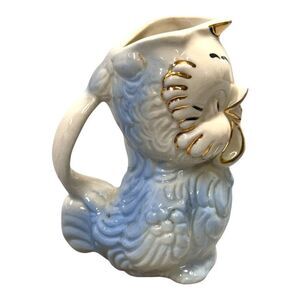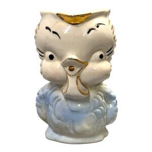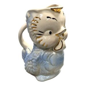 Vintage Shawnee Pottery Blue Gold Trim Chicken Bird Pitcher American Bisque MCM