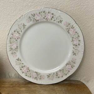Sheffield Fine China 2 Plates Classic 501 Pattern. Pink & White Roses, Green Leaves, Platinum trim.