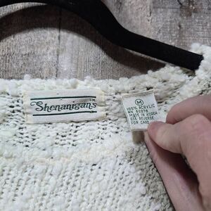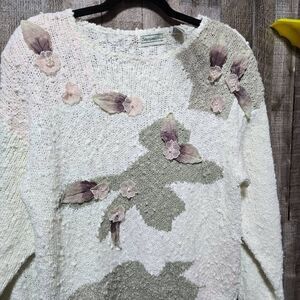 Vintage Shenanigans Boucle Knit Sweater Cream w/Pastel Floral Appliqués