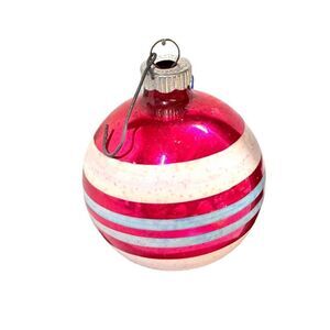 Elevate holiday decor with this set of vintage Shiny Brite ornaments. The pink and white striped design brings a nostalgic touch to any Christmas tree.