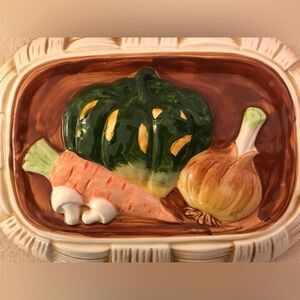 This is lovely. Colors are fantastic. This is featuring veggies. Ready to hang in your kitchen. 12in wide 9in deep