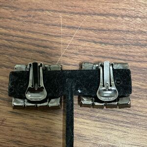 Vintage Signed Clip On Earrings with Square Prong Set Blue Crystals.