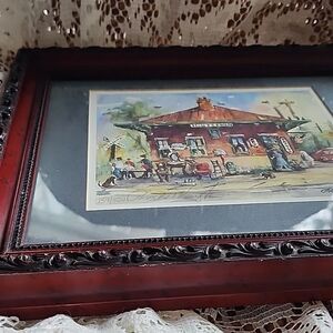Signed print 157/500 Artist Phoebe DeVaughn framed print featuring small town Georgia train depot