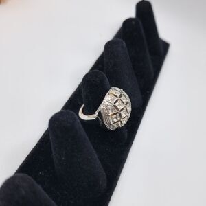 Gorgeous art deco style, Silver with beautiful clear cz diamonds dome cocktail ring