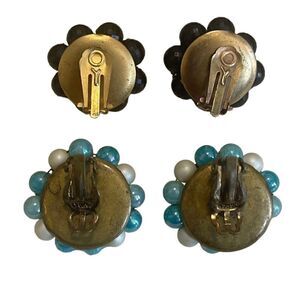 Black cluster earrings are signed Hong Kong, although it is faint and worn.