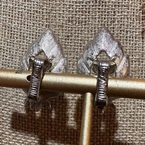 Vintage Signed Sarah Coventry Rhinestone Brushed Silver Tone Clip on Earrings