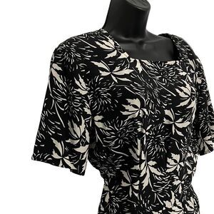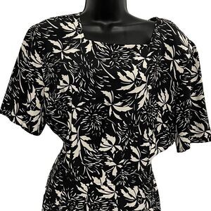 Vintage 1980's 90s Silk Studio Black White 100% Silk Flora Floral Fauna Square Neck Maxi Whimsigoth Grunge Dress