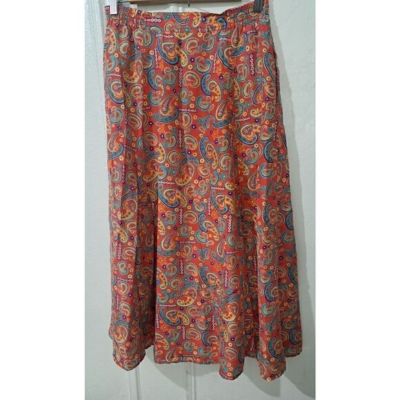 Vintage Silk Spirit Womens Medium 100% Silk Paisley Maxi Skirt Pockets Orange