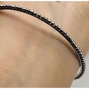 Vintage Silver Beaded Bracelet Bangle 2.6in dia