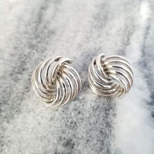 Vintage Silver Tone Knot Style Post Earrings, Retro 80s Design Studs