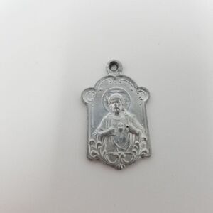 Vintage Silver Tone Religious Medalion Pendant Charm, Jesus, Protection, Estate