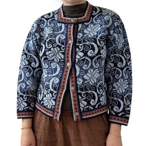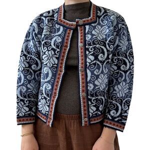 Vintage Skjaeveland of Norway Womens Blue 100% Wool Scandinavian Cardigan Sz S