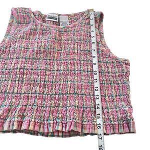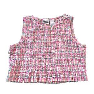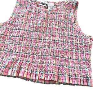 Vintage Basic Editions plaid smocked sleeveless crop top, boxy fit. So cute! Size XL. Measurements in photos. No stains or holes.
