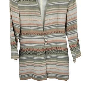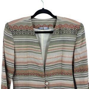 Vintage Southwestern Blazer M Sage Rust Linen Embroidered 2 Button Duster USA