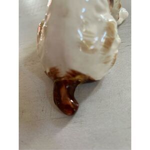 Cute brown and white spaniel dog figurine. Painted very well. Approximately 5 inches tall by 6 inches long has stamp on bottom, and made in Japan. Tail has been repaired, hard to see, unless you really look, doesn’t detract from the cuteness.