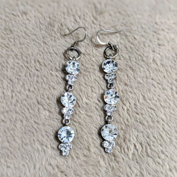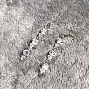 Vintage Sparkly Clear Large Rhinestone Drop Pierced Earrings