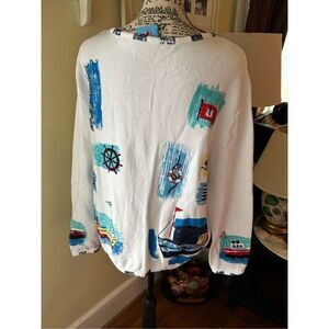 Sportelle Vintage inquest bateau sailboat cardigan jacket with anchors and sailboats. White size medium, nautical buttons, like new condition and 100% cotton
