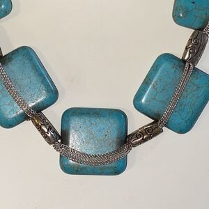 Vintage Square Chunky Turquoise Necklace set in Sterling Silver