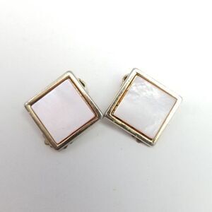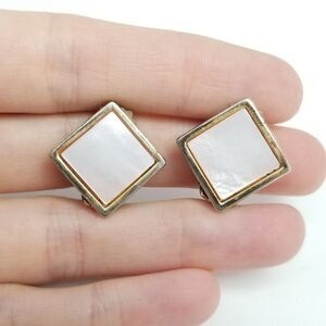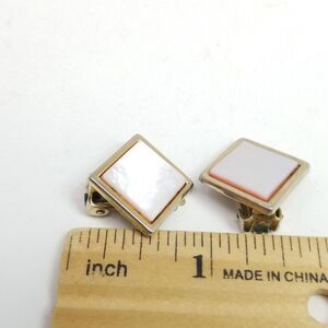 Vintage Square Clip On Earrings, White and Gold Tone Setting, Minimal Estate