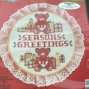 Vintage Stamped Cross Stitch Seasons Greetings
