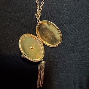 Vintage Steampunk Gold Tone Tassel Locket Necklace