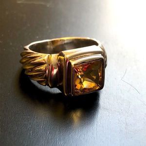 Vintage Sterling Silver Cushion Cut Faceted Citrine Ring