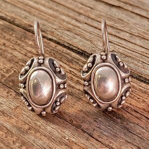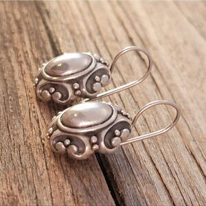 Vintage sterling silver beaded scroll dangle drop earrings.