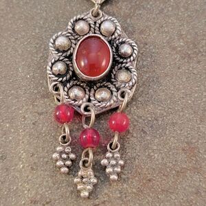 Vintage Sterling Carnelian Tribal Middle Eastern Y Necklace