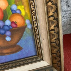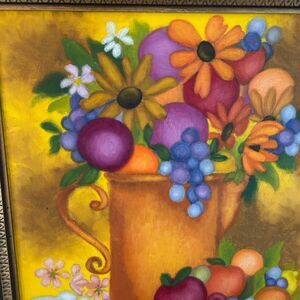 Vintage Still Life Flowers fruit Floral Oil Painting in Thick Gold Frame Ornate
