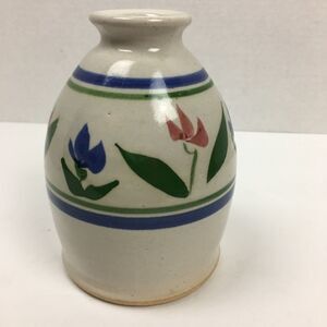 Vintage Stoneware Pottery Hand Painted Floral Vase