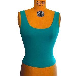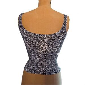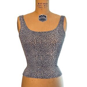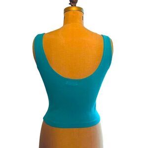 Vintage Stretchy Crop Tops - Turquoise and Leopard Print, both have low round neck and sit lower at the back. Both with a decent amount of spandex for body contouring..